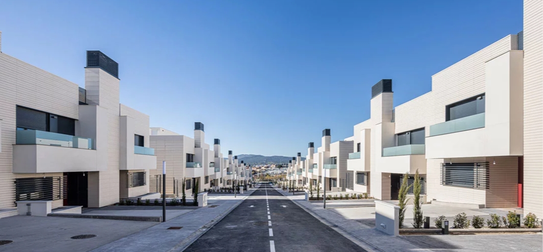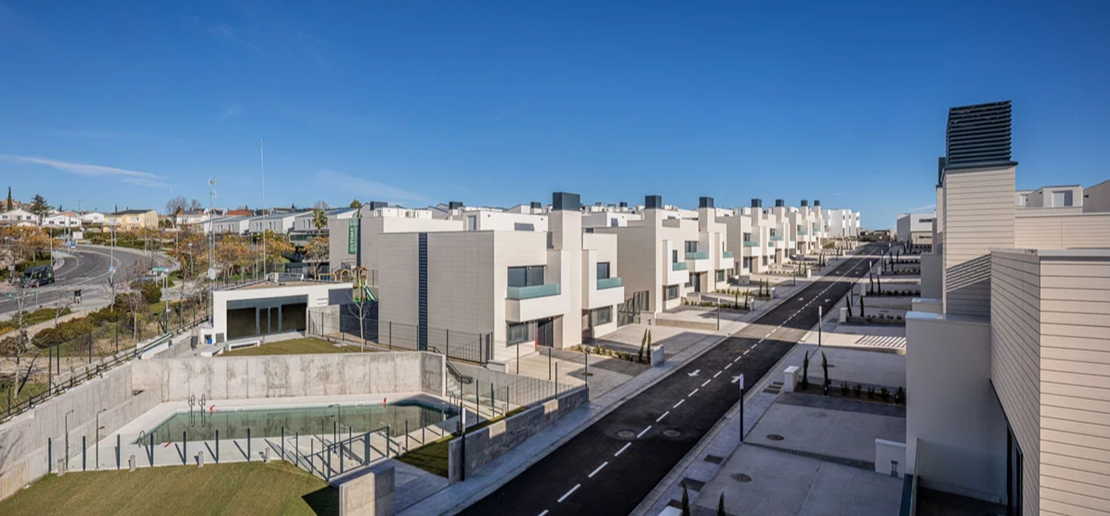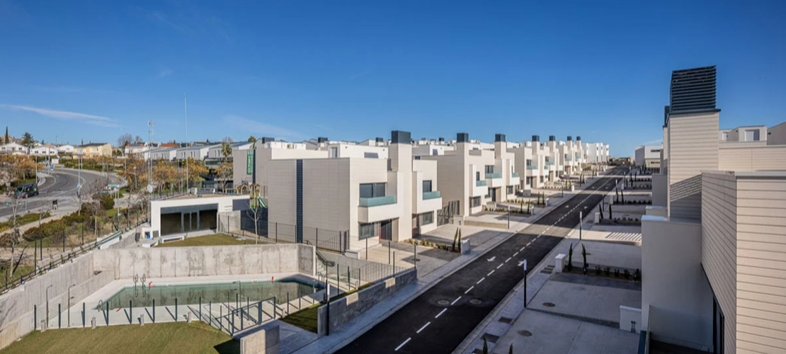 El proyecto contempla 43 viviendas unifamiliares adosadas y pareadas de 3 y 4 dormitorios en el seno de un complejo residencial con zonas comunes: piscina, zonas verdes, área de juegos infantiles y local social.