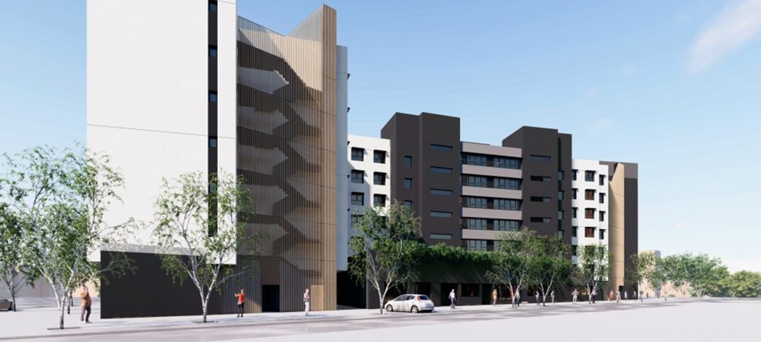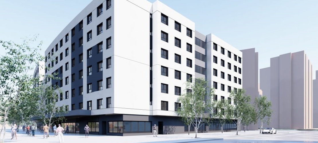 - Planta Primera: Superficie aproximada de 1900 m². Alberga uso residencial público y salas de estar para los residentes, así como una terraza.